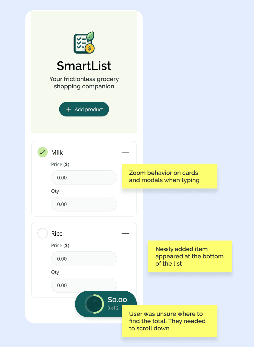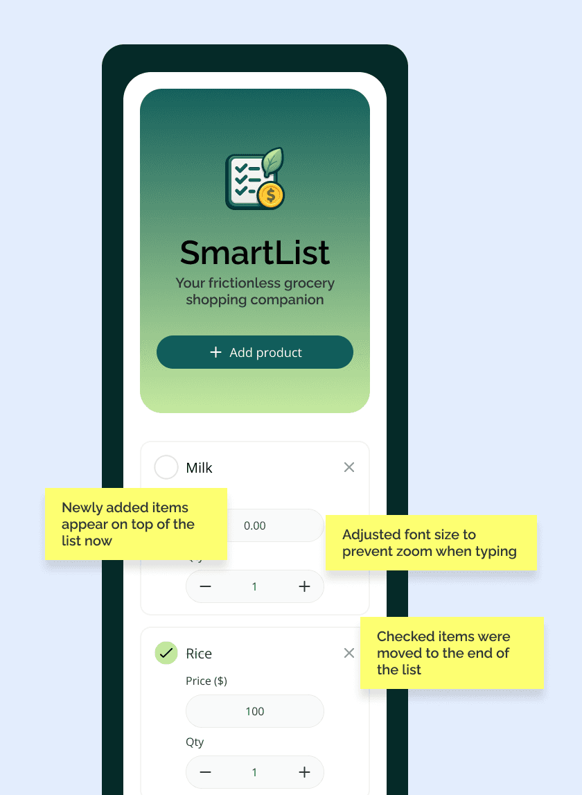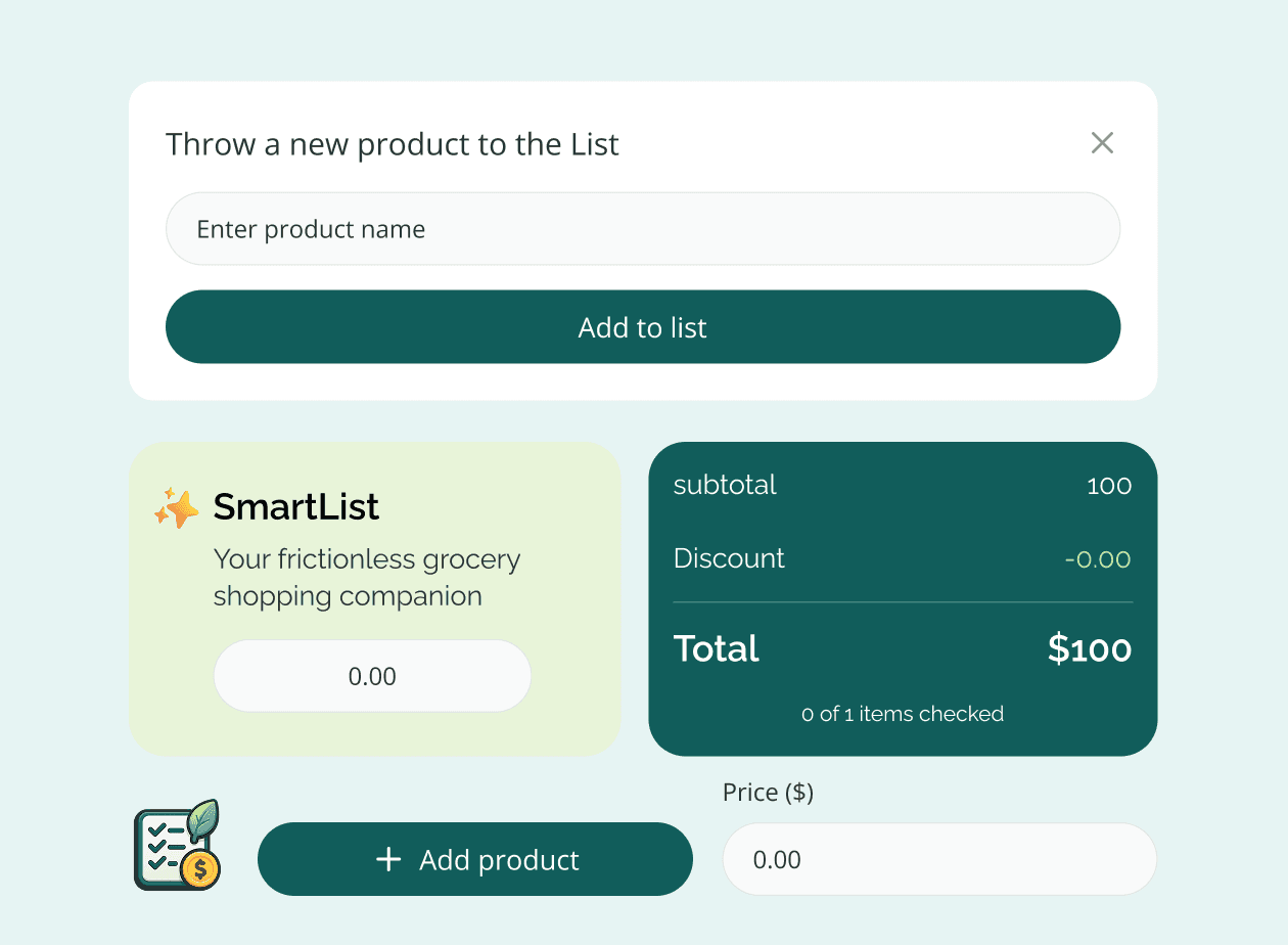 The visual direction was inspired by calm productivity tools and modern fintech interfaces. The goal was to create an interface that feels trustworthy, lightweight, and reassuring, especially in a real-world context like grocery shopping, where speed and confidence matter more.